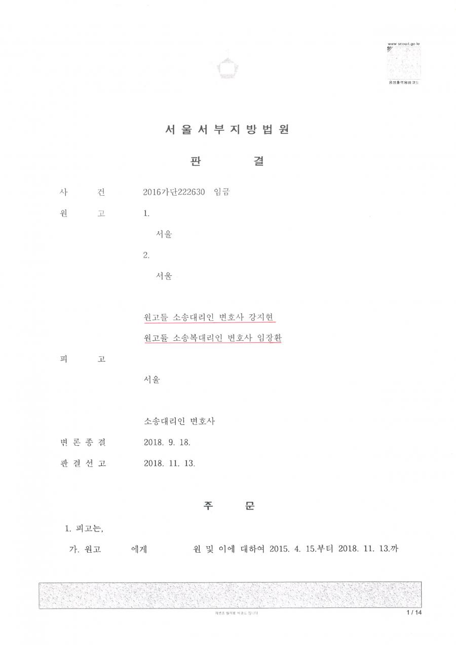 - 사건 : 서울서부지방법원 2016가단222630 임금